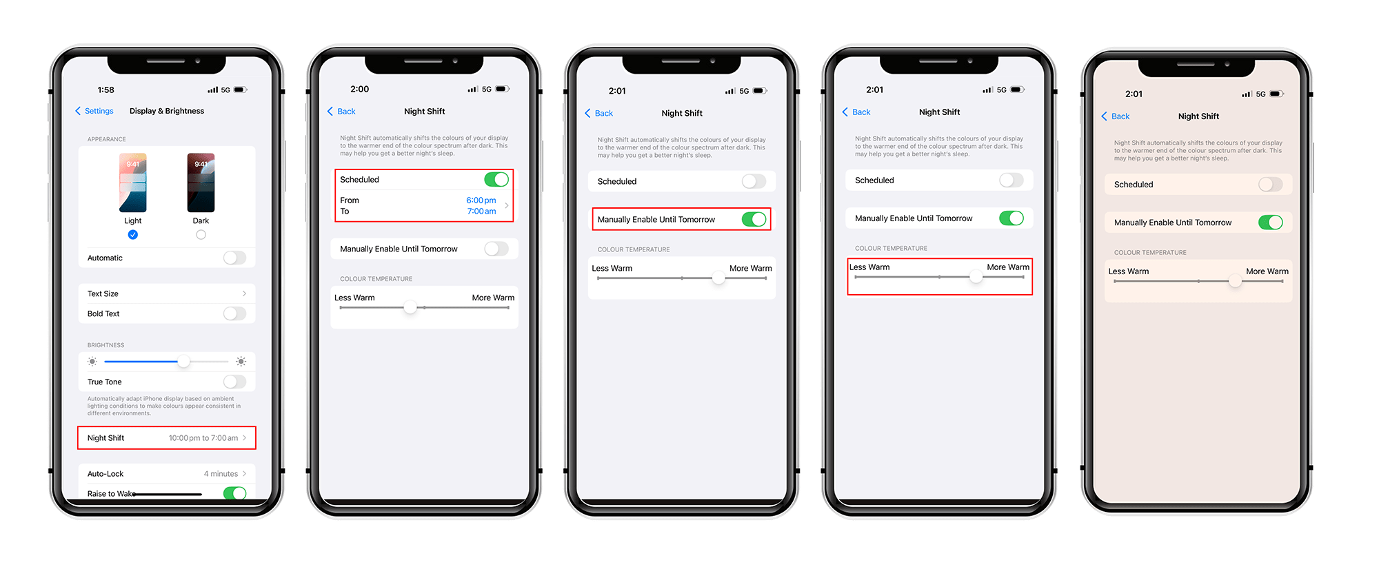 - Use iPhone settings, such as Night Shift and Color Tint.